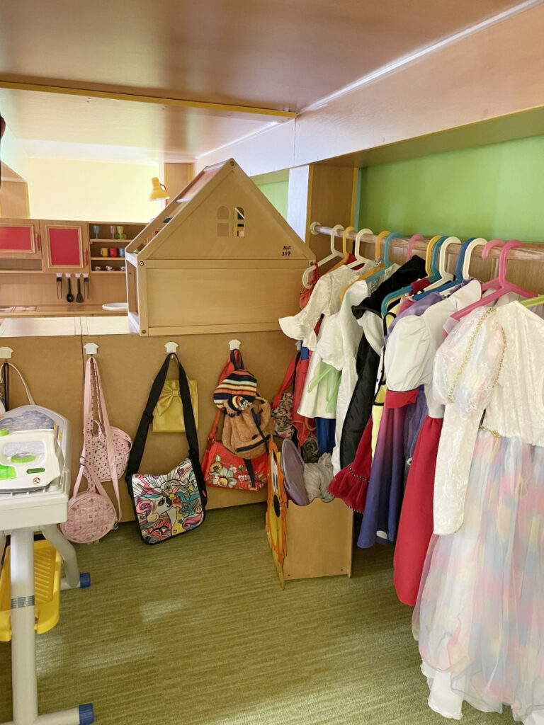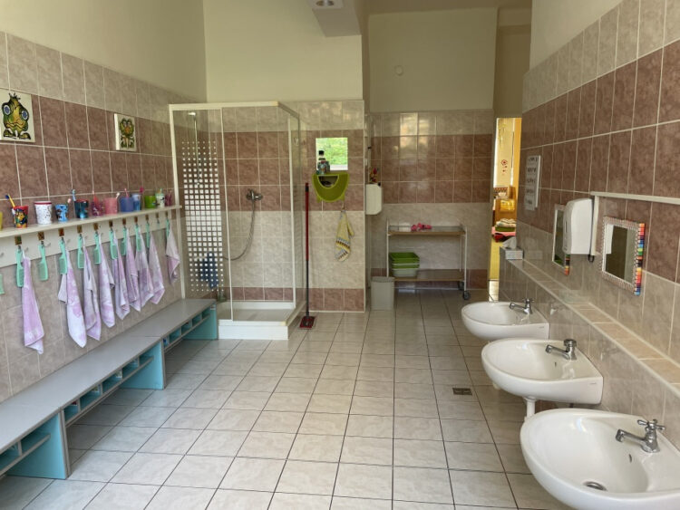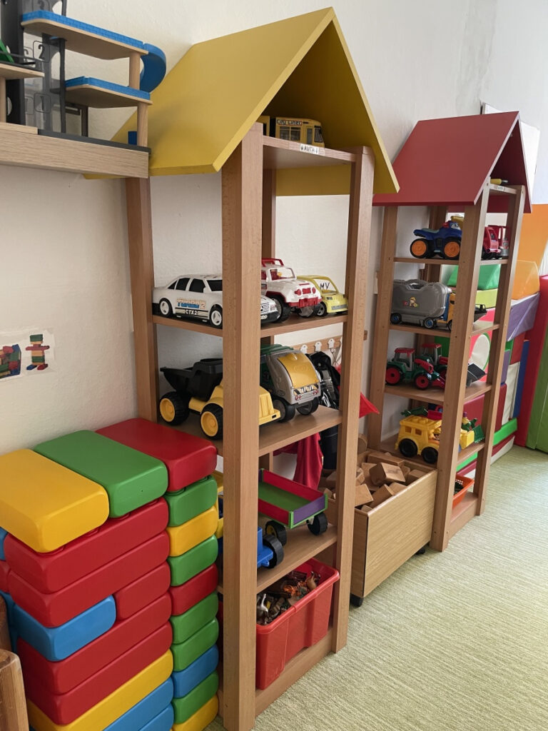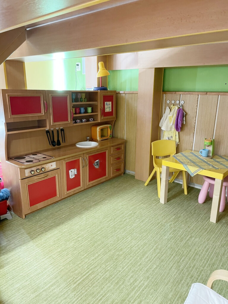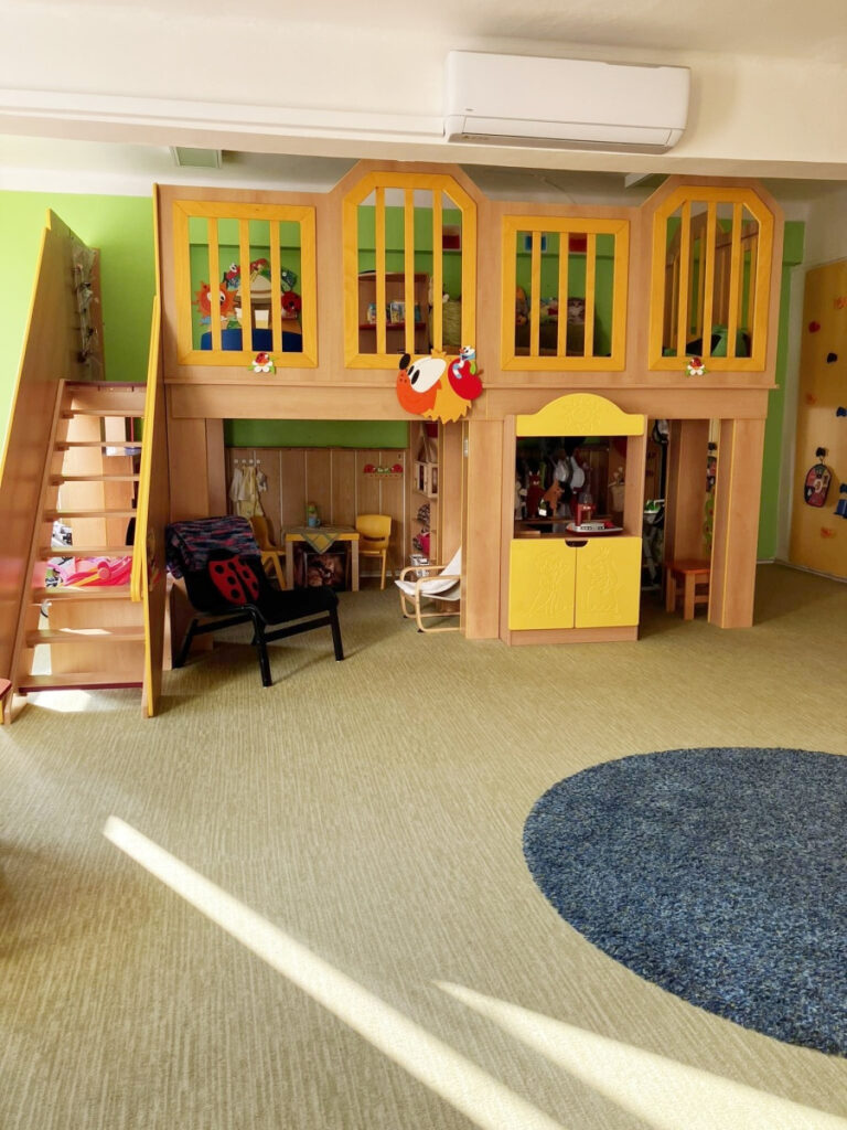 Třída má hernu pro stolní a manipulační hry, hernu s kostkami a vestavěnou kuchyňku s patrem, obchůdek, divadlo. Velmi se nám osvědčily ranní úkoly s rodiči – rodiče se seznamují s činnostmi dětí ve školce,