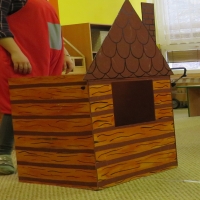 V lese stála budka opuštěná, do pronájmu připravená. Běží kolem myška malá, hned se v budce ubytovala. Od rybníka žabka přiskákala, na dveře zaťukala a k myšce se nastěhovala. Do budky i…