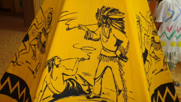 Na válečné stezce indiáni řvou. Vezmou barvy, štětce, šaty malujou. Válečnými barvami natřeli se celí. Jdou ulovit bizona, tááákhle vyhladovělí. Já mám šípy, já mám luk, jako každý správný kluk.…