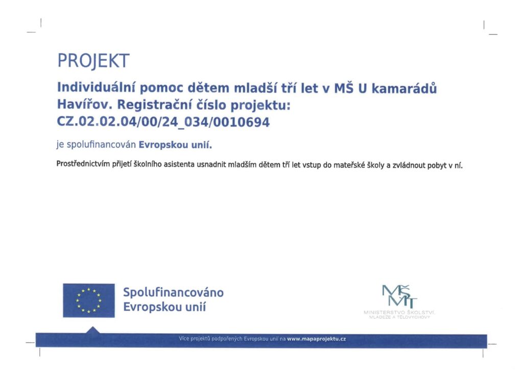 Název: Mateřská škola „U kamarádů“, Havířov – Podlesí, Čelakovského 4/1240 – odloučené pracoviště MŠ E. Holuba