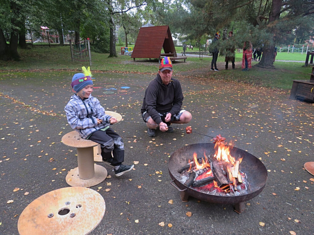 Indiánským odpolednem s rodiči krásně skončil den.
