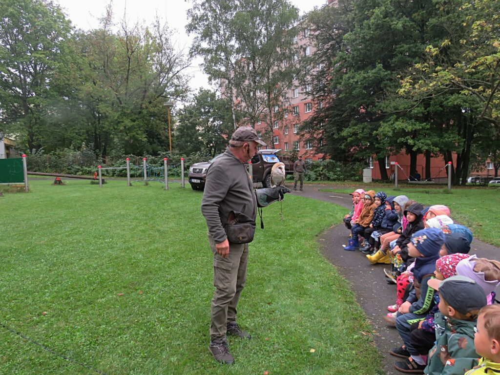 Na zahradu přijeli sokolníci s dravci,
