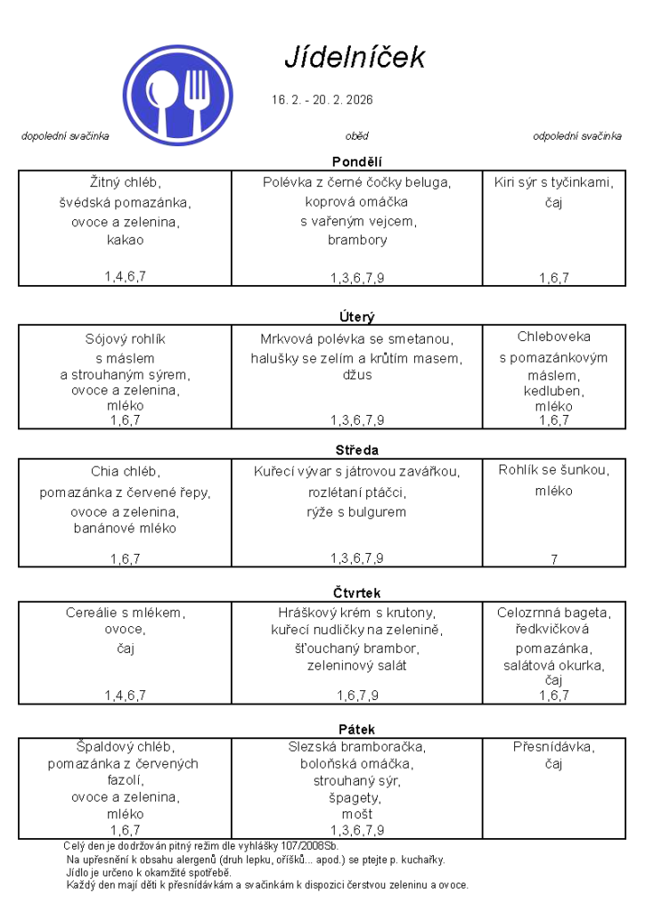 Jídelníček 16.2.-20.2.2026