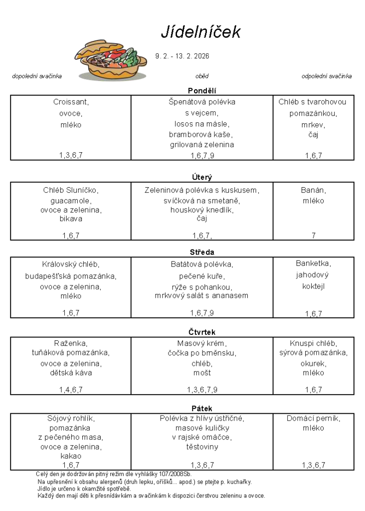 Jídelníček 9.2.-13.2.2026