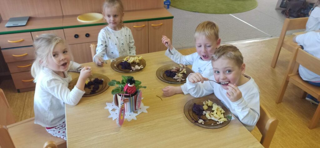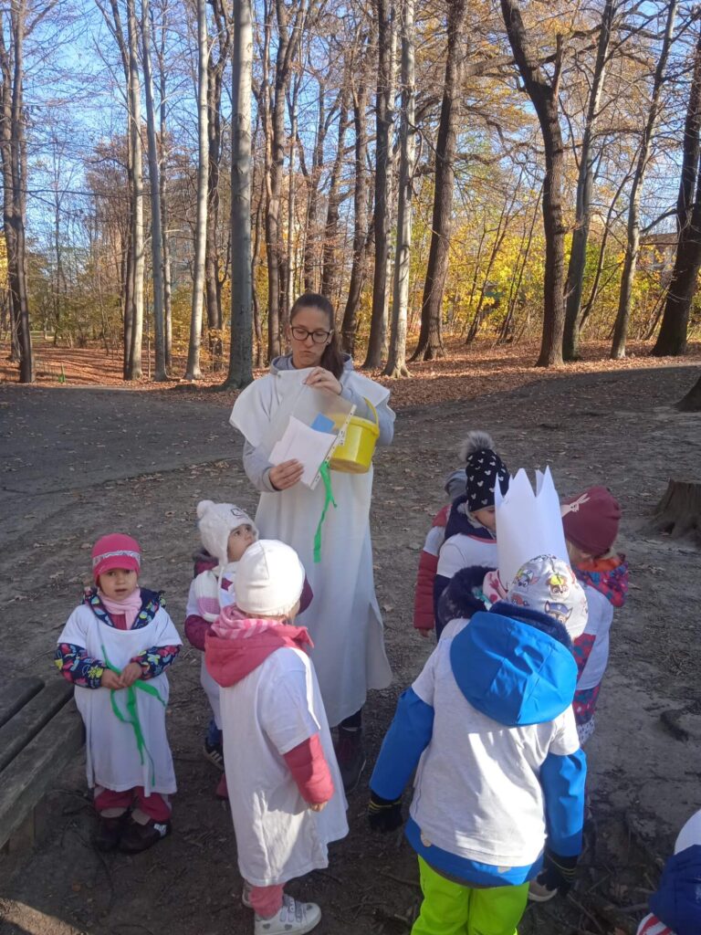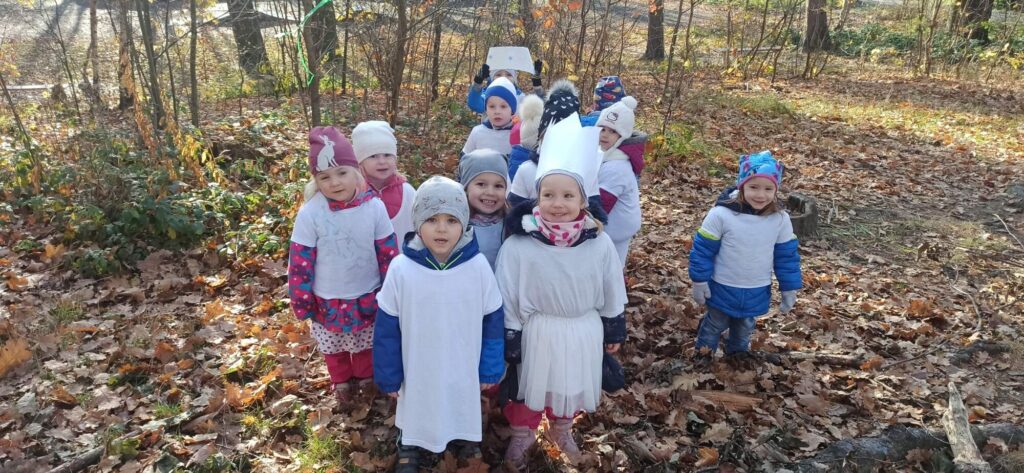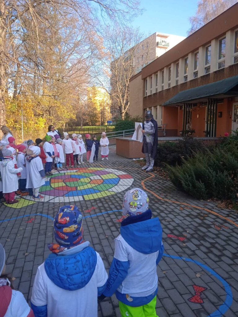 Svatý Martin přijel k nám, prý by nás potřeboval. Jednu prosbu na nás měl, zda někdo podkovu neviděl. Jeho koník jednu ztratil, tím svůj příjezd zhatil. Dali jsme se do práce, hledání byla legrace. Jsme Berušky šikovné, pátrání bylo úspěšné. Podkovu i poklad máme, tématickou dobrotu na oběd si dáme.
