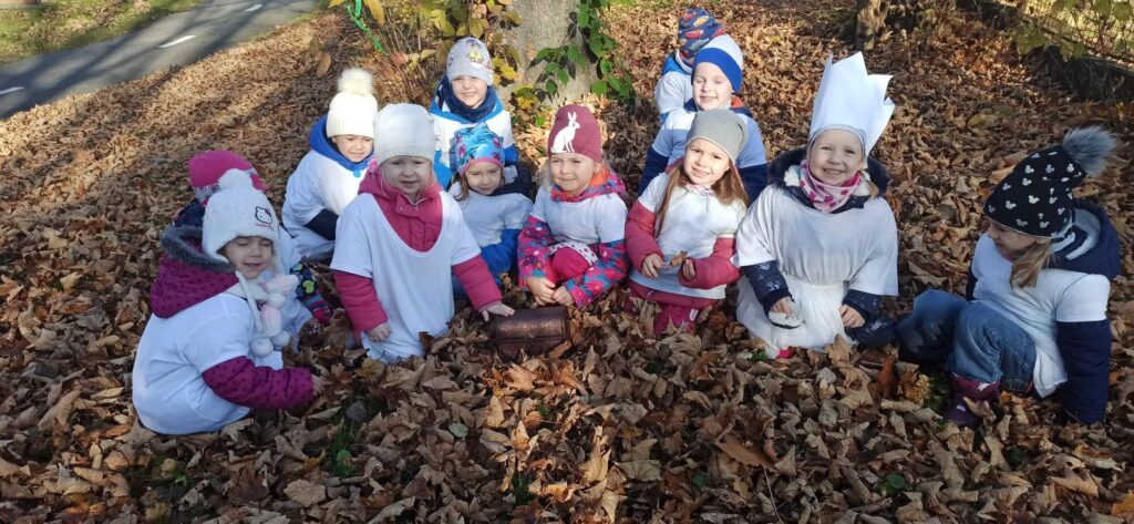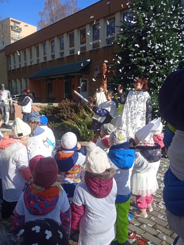 Listopad, listopad, lísteček nám na zem spad. Rodiče naši, děkujeme, že Vás máme, nad zahradou se rozplýváme. Pracovali jste dost a dost, máme obrovskou radost. Velké díky patří Vám, snad všem dětem poklad radost udělal.