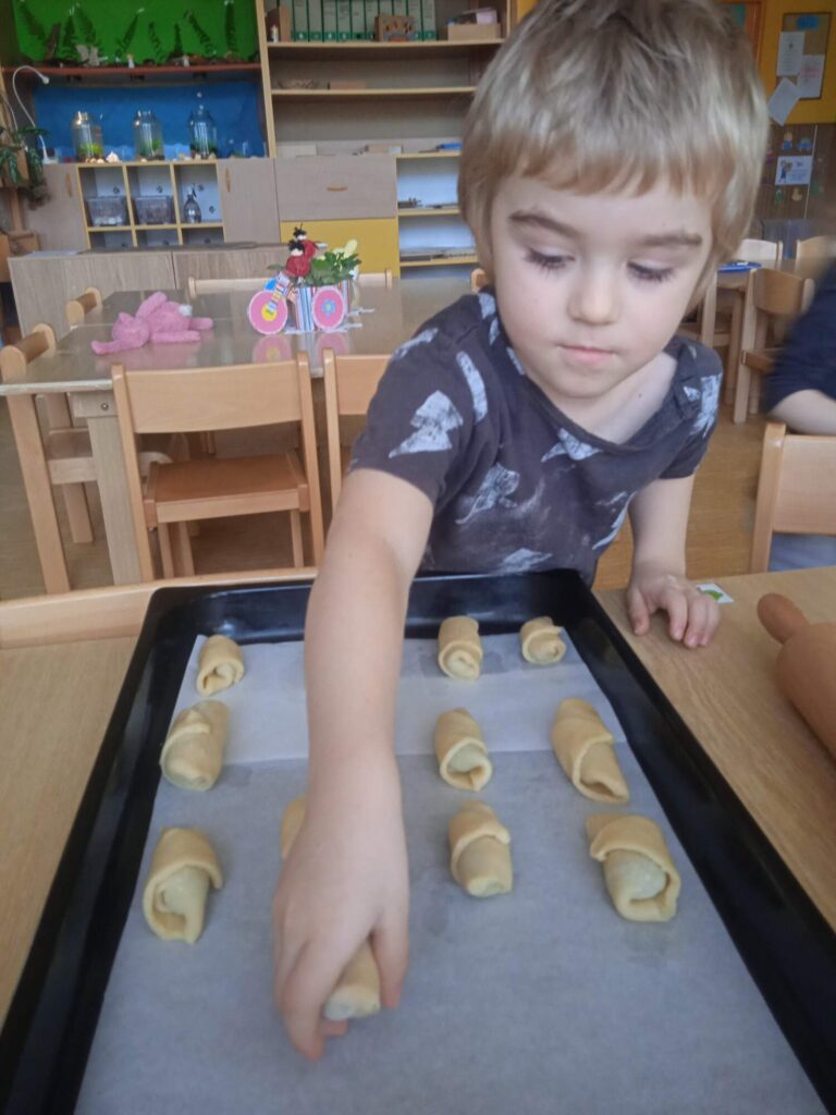 Také jsme tématičtí chtěli být, rozhodli jsme se svatomartinské rohlíčky vyrobit. Jsme šikovné dětičky, povedly se nám naše rohlíčky.