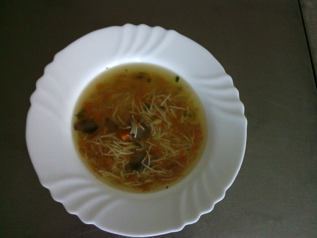 Ingredience: 1 menší slepice sůl a pepř 1,5 l vody 60 g mrkve 100 g celeru 40 g petržele 100 g čerstvých hub 1…