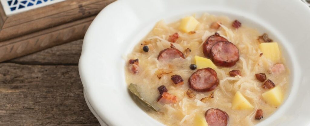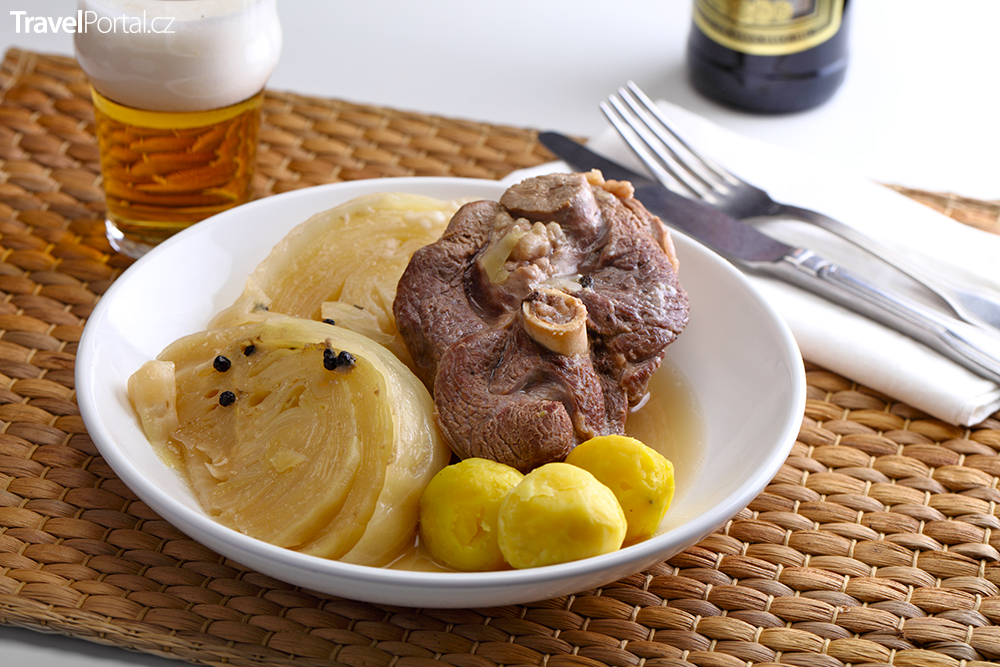 Ingredience: hovězí nebo vepřové maso kyselé zelí cibule hladká mouka olej rajský protlak sůl, pepř, bobkový listopad mrkev celer petržel Postup: Do vroucí vody…