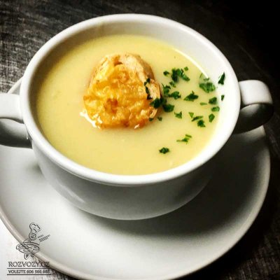 Ingredience: 1/8 másla 1 velká červená cibule 1 velká žlutá cibule 2 stroužky česneku 1,5 l vývaru 4 ks…