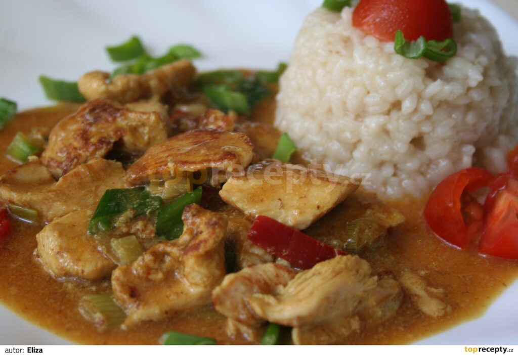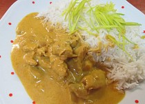 Ingredience: 400 g krůtí maso (může být i kuřecí, králičí, kachní, …) 1 ks cibule, česnek (2-3 stroužky) kurkuma, římský kmín, koriandr, kari, sůl…