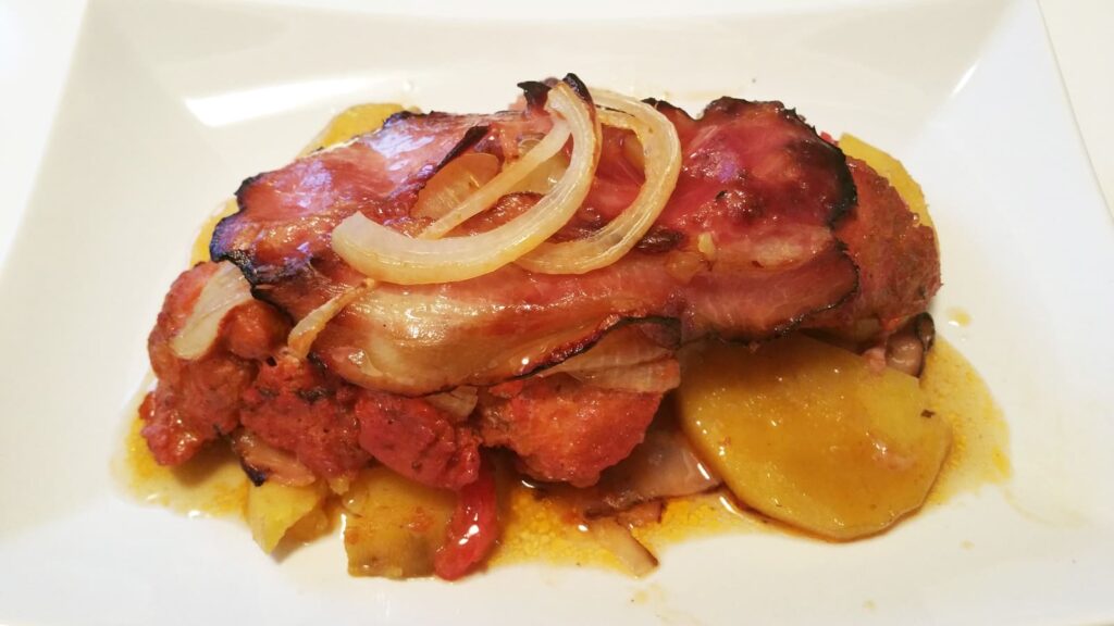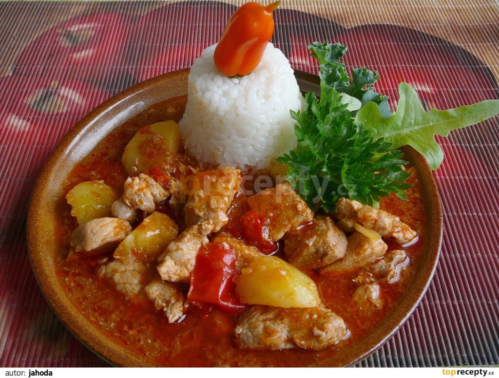 Ingredience: 750g cibule 1kg vepřového masa (plec nebo kýta) 2 lžíce mleté sladké papriky 2 zelené papriky 4 rajčata sůl, pepř vývar na podlévání…