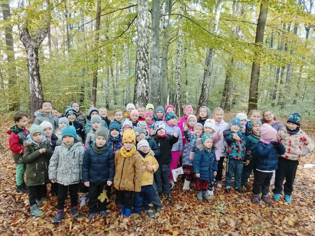 Na procházku lesem jsme pozvaly kamarády z 1. třídy ze ZŠ F.Hrubína.